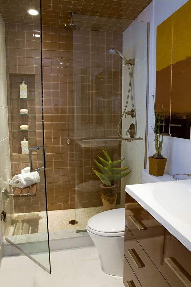 Но, когда пространство ограничено, приходится чем-то жертвовать. В условиях ограниченного пространства альтернативой ванной может стать душевая кабинка. Не редкость и встроенные в стену или спрятанные под обшивкой системы хранения. Дизайнерские решения, касающиеся обустройства маленькой ванной комнаты, разнообразны. Вот лишь часть из удачных идей, которые достойны внимания.