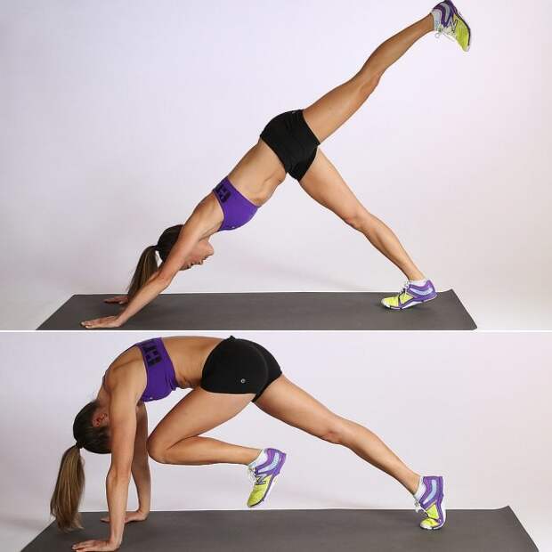 Это замечательное упражнение для ягодиц и бёдер. Для лучшего результата, используйте утяжелители-манжеты для ног и рук.