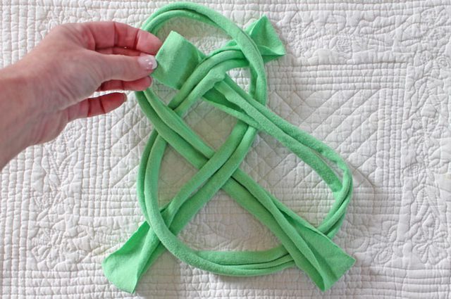 Перекрестите концы полос с одной стороны: