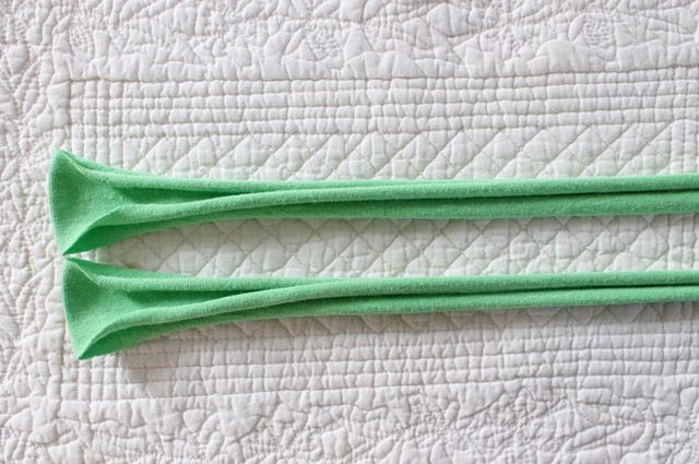 Острыми ножницами нарежьте 2 полосы шириной 4 см. Не используйте нижний край. Каждая полоса будет двухслойной.