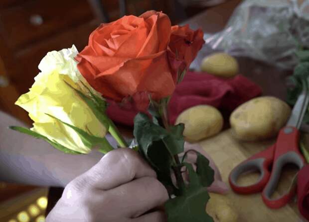 Продлите свежесть срезанных цветов, разместив их стебли в картофелинах.