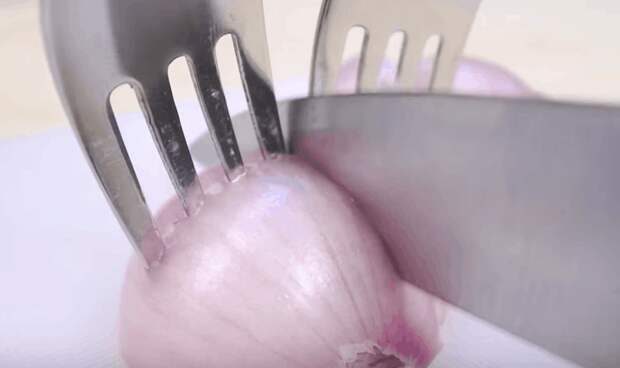Используйте две вилки, чтобы держать луковицу, пока вы ее режете.