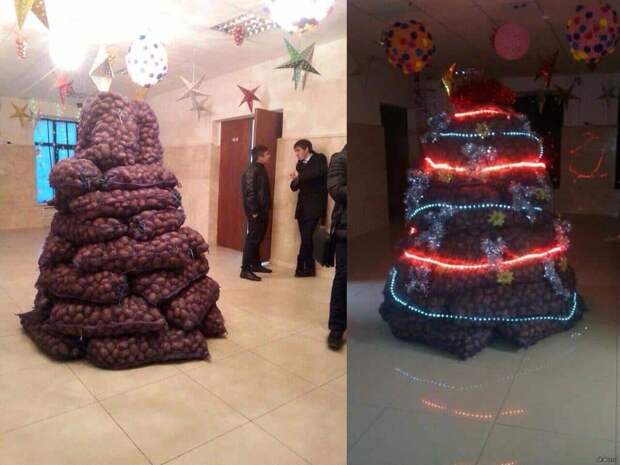 Старая покрышка, ведро и пластиковая труба — а почему бы нам не сделать елку?