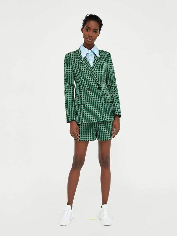 Классический пиджак в сочетании с бермудами— идеальный выбор для офиса даже в летнее время. Длина может быть разной: от очень коротких до таких, которые практически достигают колена.