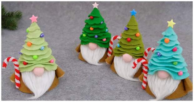 Гномики-ёлочки из фетра и бусин. Новогодний декор без шитья