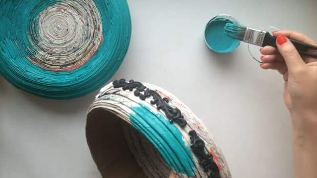 Замечательная шкатулка из газетных трубочек и картона готова!