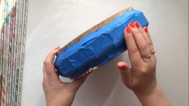По периметру картона снаружи приклейте два куска картона, создавая выпуклую поверхность.